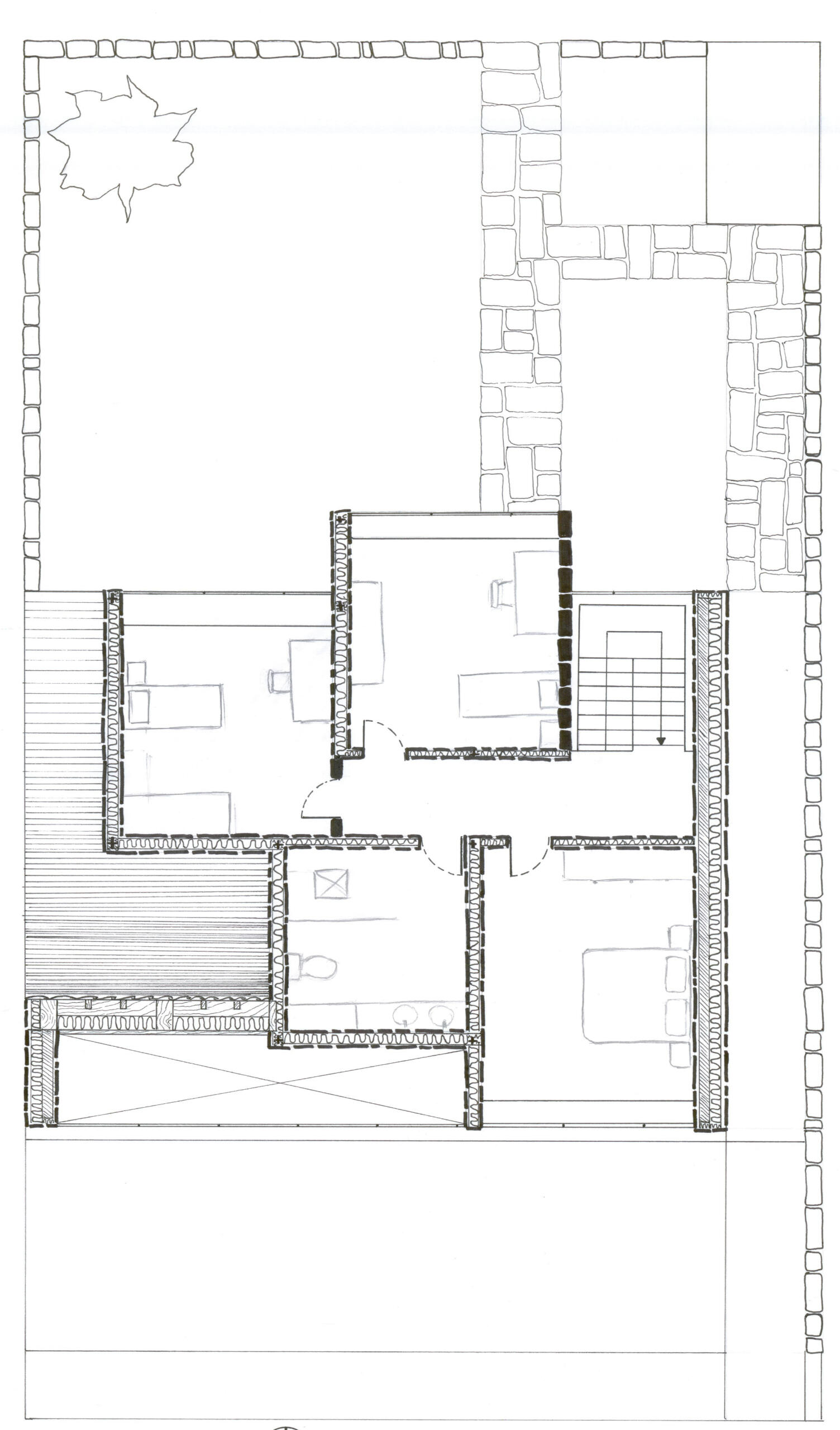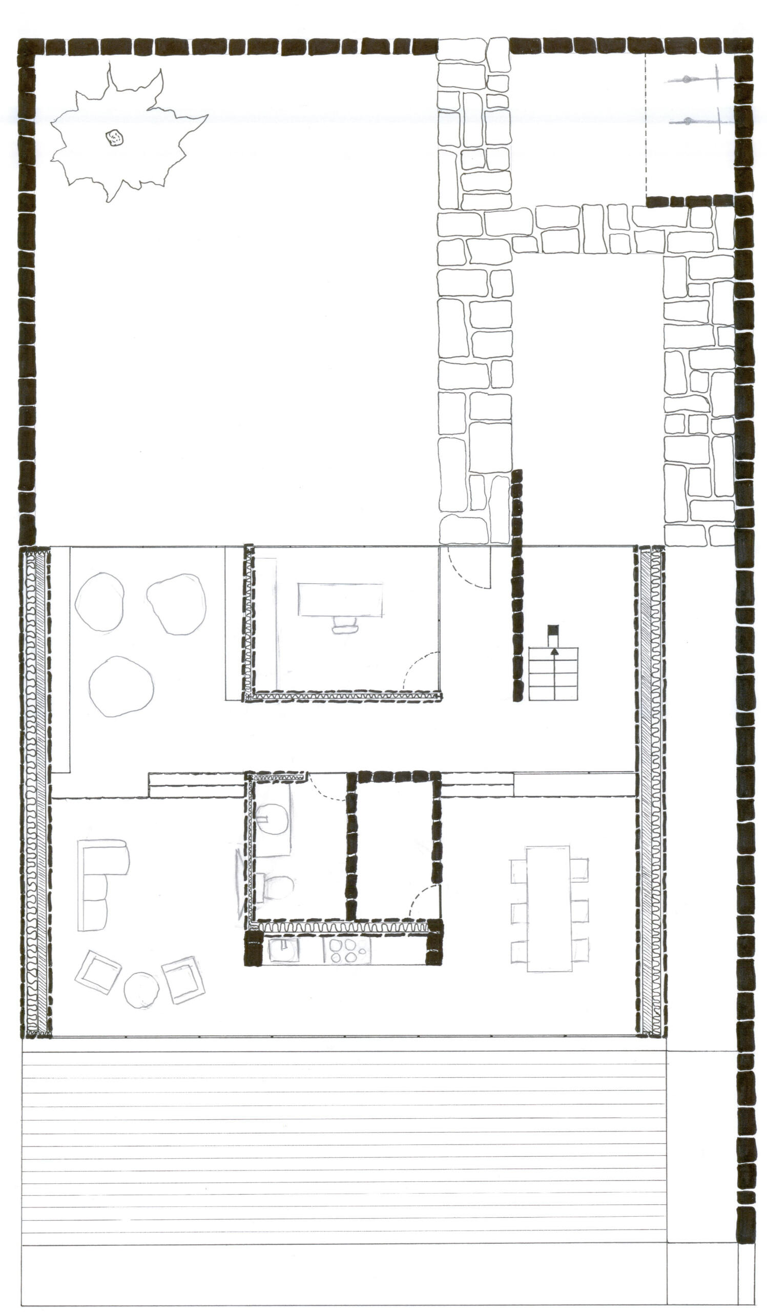 I reused the concepts of the central service core found in Lacaton Vassal’s first house. The kitchen, bathroom, and toilet are centralized in its core to have all the pipes in one location. This allows the first floor to be transversal, creating an open plan.